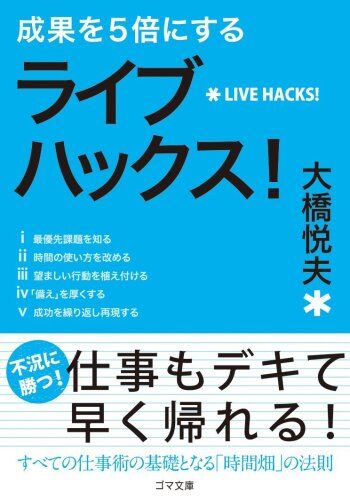 久しぶりに自己啓発本というかライフハック関連本というかを買った。成果を5倍にする ライブハックス! (ゴマ文庫)作者: 大橋悦夫出版社/メーカー: ゴマブックス発売日: 2009/03/02メディア: 文庫購入: 1人 クリック: 15回この商品を含むブログ (10件) を見る…
